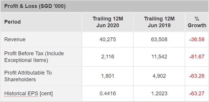 CNMC's trailing 12-month revenue dropped by 36% year-on-year to S$40.2 million despite an increase in average realised gold price. This was due to COVID-19 pandemic which resulted in a stop in all mining activities for a period of time. This has caused a significant drop in the production of fine gold, which impacted their revenue greatly.
