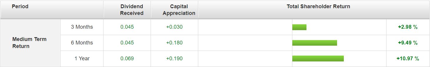 For the past 6 months and 1 year, Singtel’s total shareholder return came in at 9.49% and 10.97% respectively.