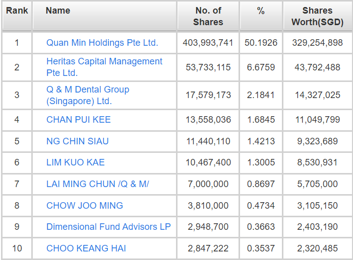 The single largest shareholder of Q&M Dental is Quan Min Holdings Pte Ltd., which has a 50.19% stake in the Group. Quan Min Holdings Pte. Ltd. is an investment holding company incorporated in Singapore and is the Company’s ultimate parent company.