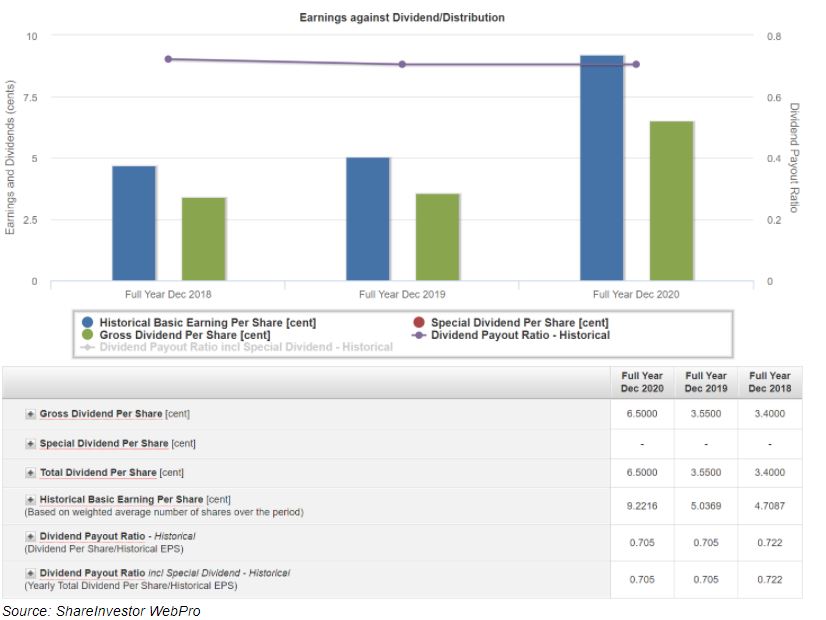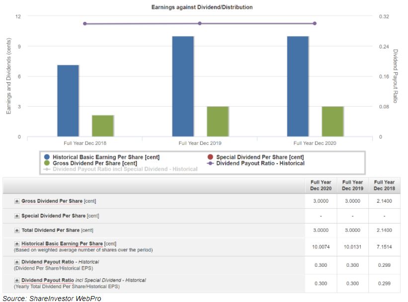 With FY2020’s earnings remain also unchanged for FY2020, therefore the company’s total dividend per share kept stable at 3.0 Singapore cents.