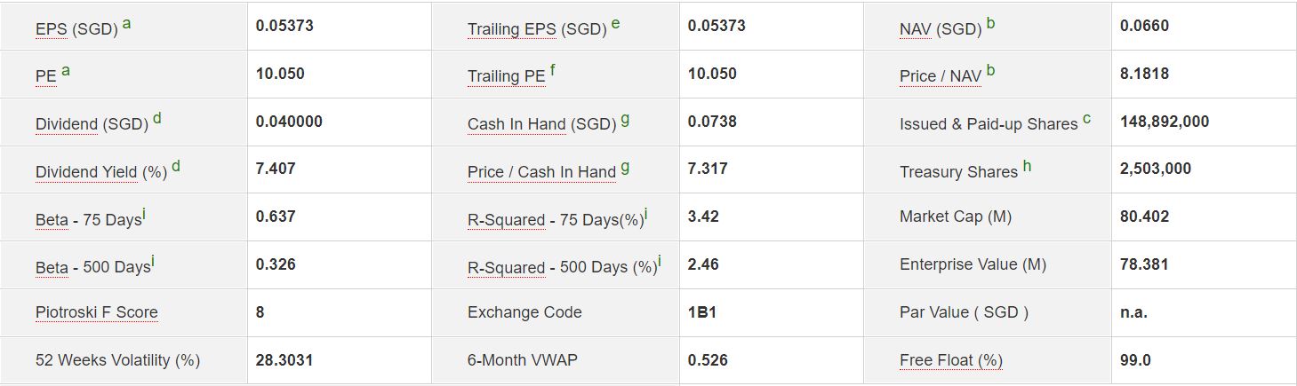 Based on the current share price of S$0.54, this translates into a dividend yield of 7.40%.