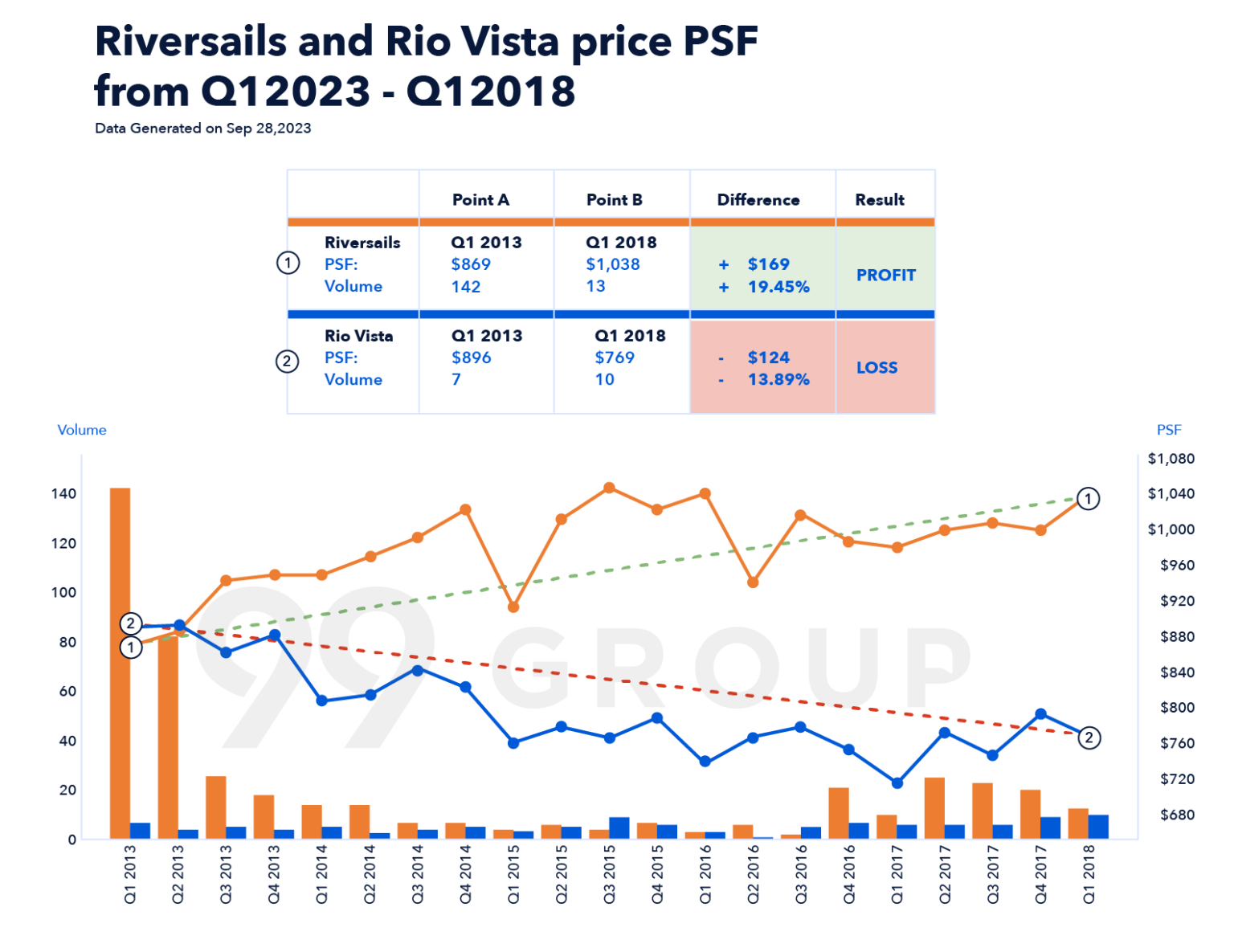 In contrast, sellers in Rio Vista during the same period faced a loss of S$124 psf, equivalent to a 13.89% decrease in value.