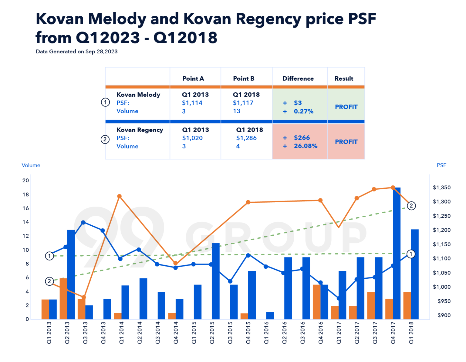 Another case study involves Kovan Regency, launched in 2012, and Kovan Melody, launched in 2004, once again, located just a short walk from each other. Despite their similar amenities and proximity to Kovan MRT, Kovan Regency boasted higher price growth than Kovan Melody from 2013 to 2018.