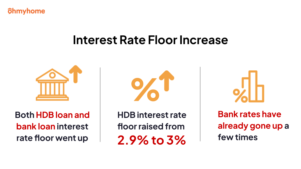 The reason why this matters is that when the interest rate floor increases, the amount you can borrow from either HDB or the bank will then decrease as a result.