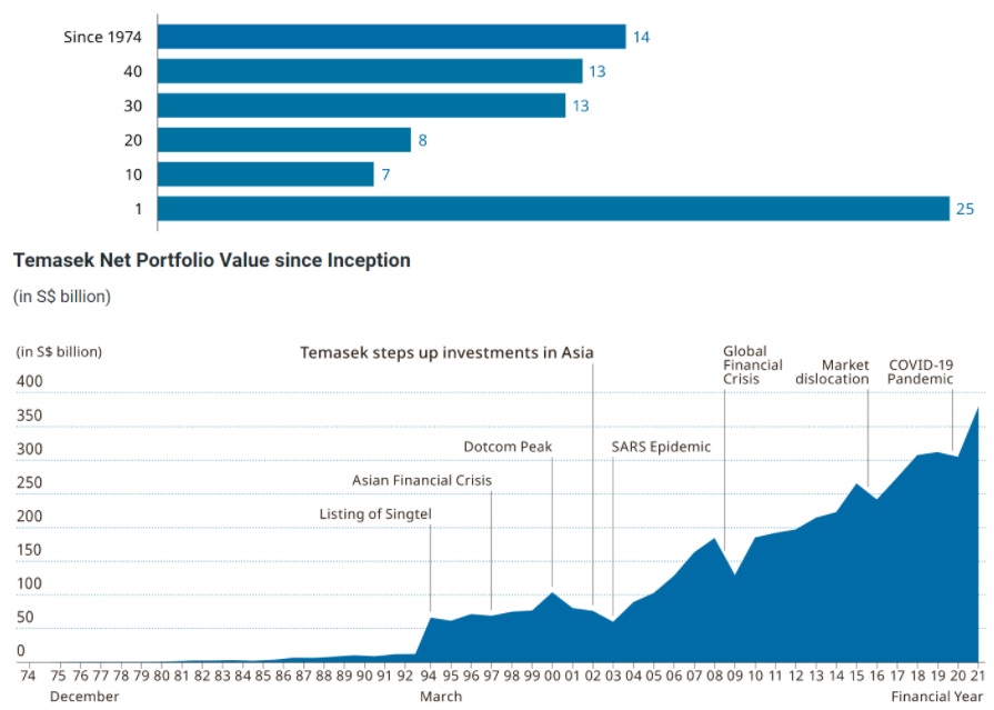 Temasek Holdings is currently in the limelight after its Chinese tech stocks suffer a fallout from the regulatory tightening. Despite that, it has achieved an annual total shareholder return of around 14% since 1974.
