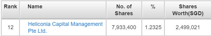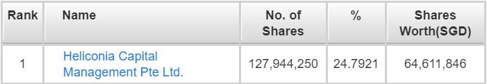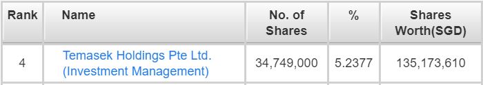 Temasek’s wholly owned subsidiary, Heliconia Capital Management Pte Ltd., is the largest shareholder for CSE Global, with a 24.79% stake in the company.