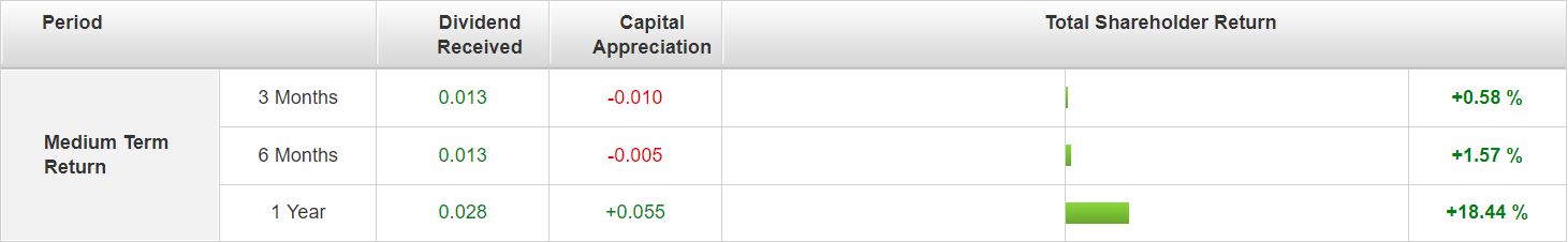 Meanwhile, CSE Global has achieved a total shareholder return of 18.44% for the past 1 year, with capital appreciation (5.5 Singapore cents per share) taking up most of the returns.