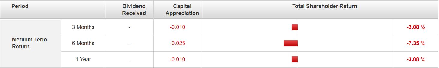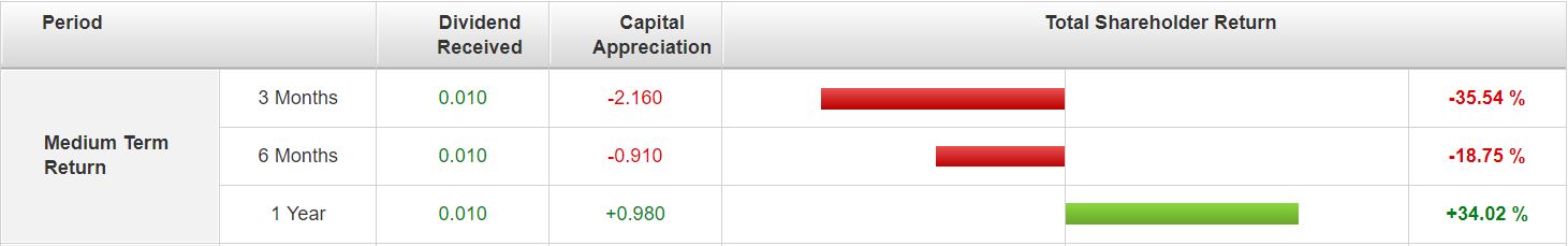 umbo has achieved a total shareholder return of –3.08% for the past 1 year, mainly due to the ongoing pandemic which has hampered its operation performance, which resulted in the negative return for its shareholders.