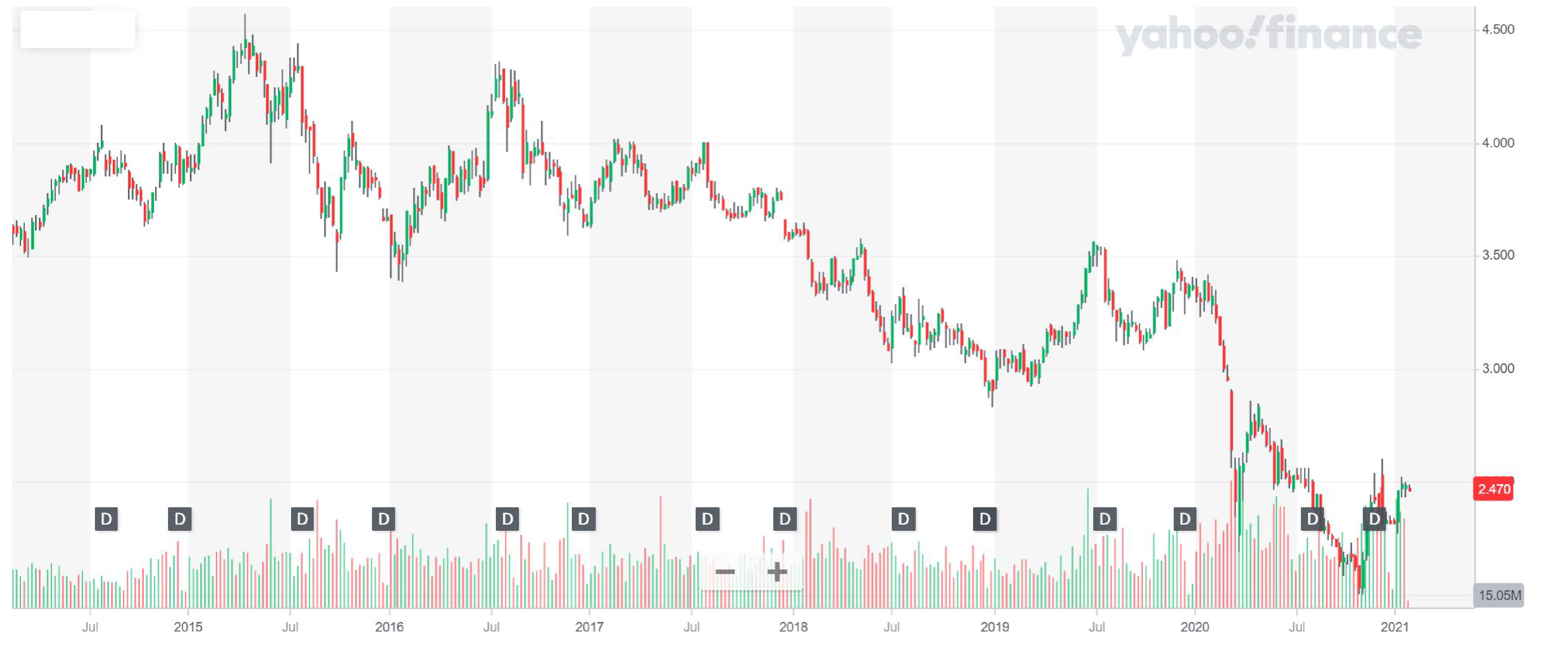 When you see this stock chart, what is your first impression? You might be thinking that this must be some Singapore company that you have never heard about. And actually, this is the stock price chart of Singtel, the top telecommunication company in Singapore! Singtel’s stocks have been on a downtrend since 2015.