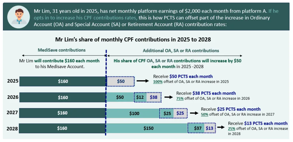 The CPF Transition Support (PCTS) scheme will run from 2025 to 2028 to help platform workers as their CPF contribution rates gradually rise to match those of employees.