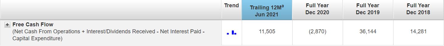 With the improvement to shipping market as well as sale of property under development, this resulted in a higher net cashflow from operating activities and hence allowing Uni-Asia's free cash flow to turn positive for the trailing 12-month period.