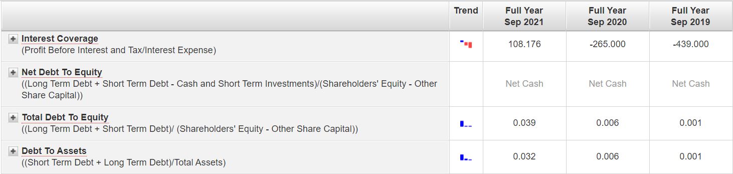 On top of that, its total debt to equity ratio stands at just 0.039 times for FY2021 and it possesses a net cash position since FY2019.