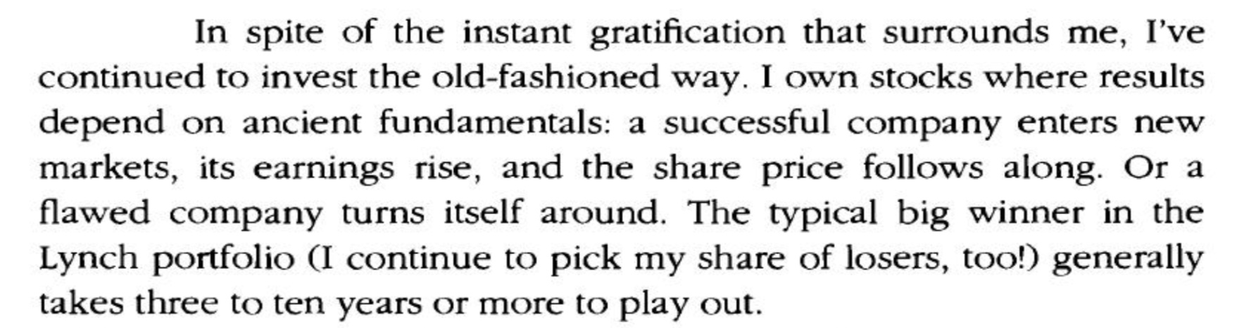 I will quote another paragraph from Peter Lynch's "One up on wall street" to conclude.