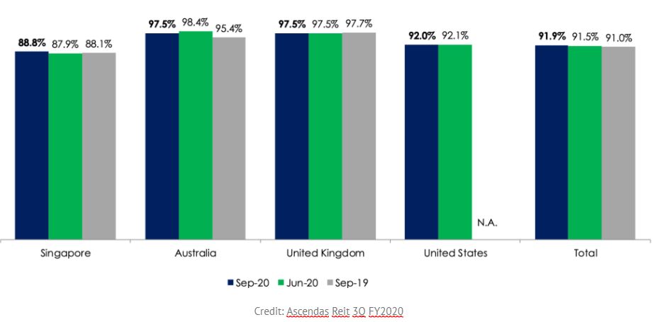 During this COVID-19 period, A-REIT have managed to achieved an impressive 88.8% occupancy rate at home and 97.5% in both Australia and the United Kingdom. This will ensure that A-REIT sees consistent and stable cash flow from even when corporations are allowing their employees to work from home. Also, one important thing to note is the slight improvement of its overall occupancy rate of 91.9%, up from 91.5% compared to 2Q 2020 according to its 3Q FY 2020 update.