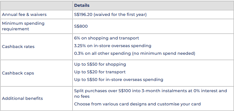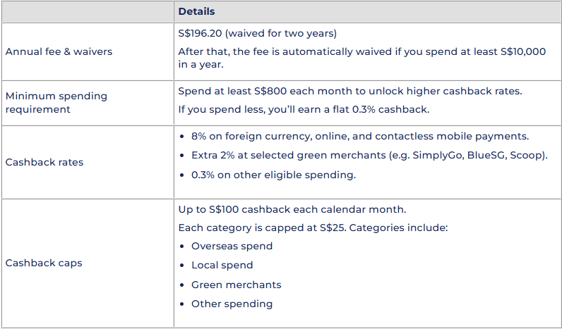 Note: The cashback rate has gone up from 6% to 8%, but the minimum spend has also increased—from S$600 to S$800.