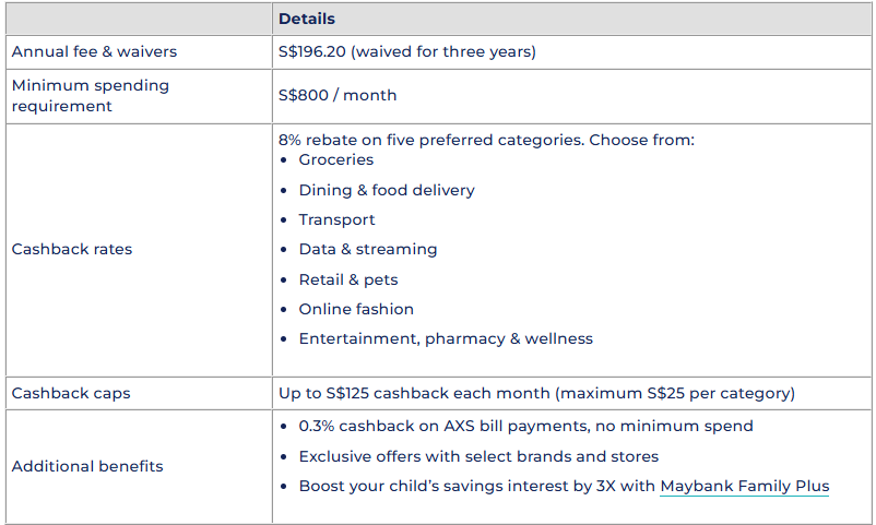 The Maybank Family and Friends card is a great option for both average and low spenders. It offers a flexible rewards system where you can choose five out of eight categories to earn cashback.