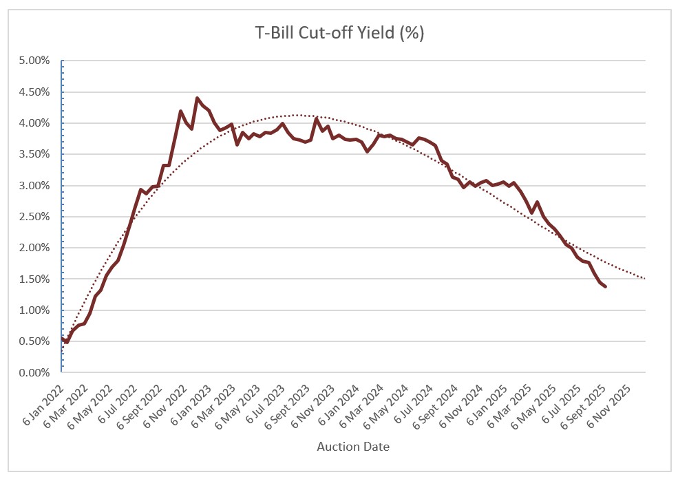 This Opinion post first appeared in my blog here: https://pwlcm.wordpress.com/2025/09/23/bs25119z-6-month-t-bill-yield-projection/
