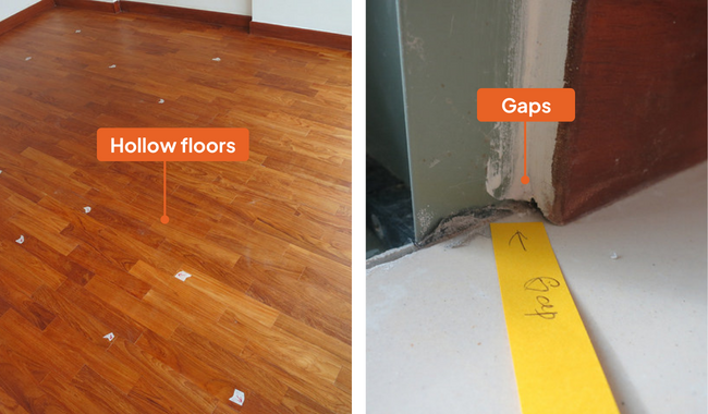 Also, look out for gaps between strips of wood or laminate, or squeaking sounds when you walk across them, which could mean they were not bonded properly to the floor.