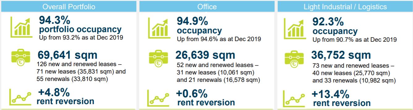 In the 9 months of FY2020, CEREIT has secured 71 new leases and 55 renewals for its portfolio. Majority of these new leases and renewals are contribution from the Light Industrial/Logistics properties.