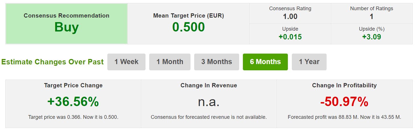 According to analyst consensus estimates, CEREIT has a consensus recommendation of “Buy” with a mean target price of €0.50. Based on CEREIT’s share price of €0.485, the potential upside amounts to 3.1%.