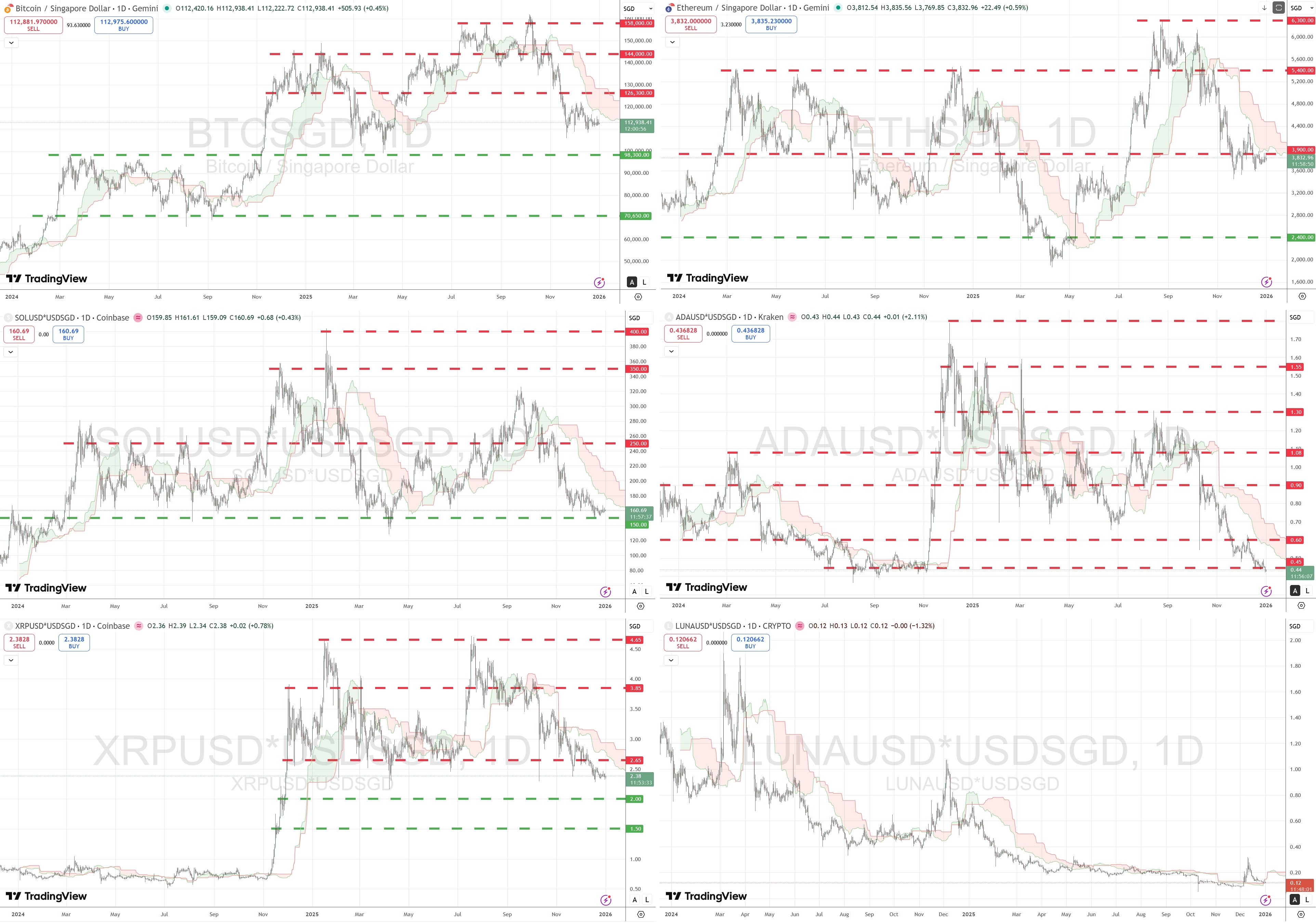 With that I have replaced TKX chart with LUNA chart, and here are the charts of the 6 crypto coins in my portfolio as of 31 December 2025:
