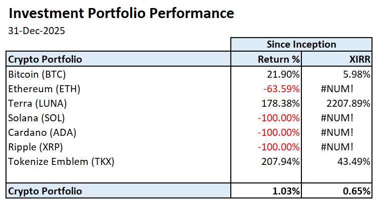 This Opinion post first appeared in my blog here: https://pwlcm.wordpress.com/2026/01/02/crypto-investment-update-december-2025/