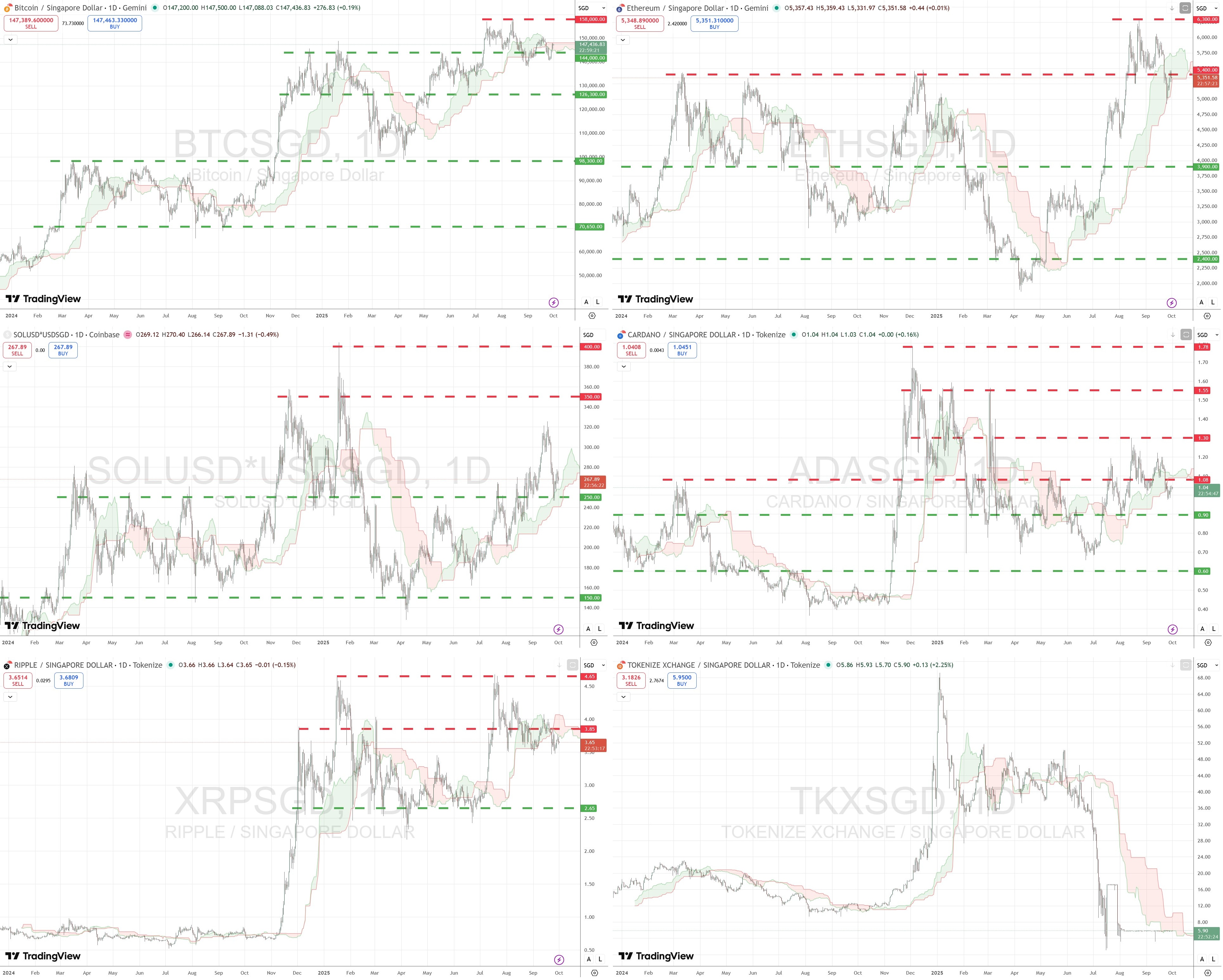 Here are the charts of the 6 crypto coins in my portfolio as of 30 September 2025: