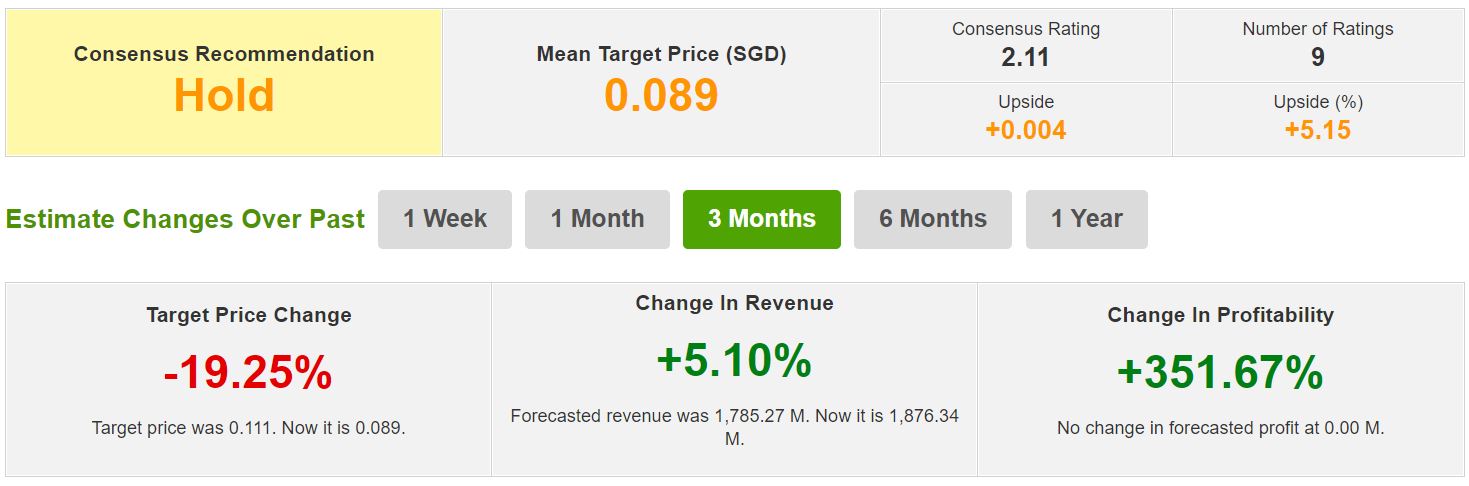 Over the 3 months, analysts have slashed their target price by more than 19%. Despite that, analysts have upgraded its forecasted revenue by 5.10% on back of the diversification into clean energy sector and the recovery in the offshore marine sector.
