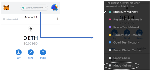 Now that you’ve added the Matic Mainnet, click the Ethereum Mainnet button to see the list of networks you’re connected to. You should be able to see the Matic Mainnet in the dropdown list.