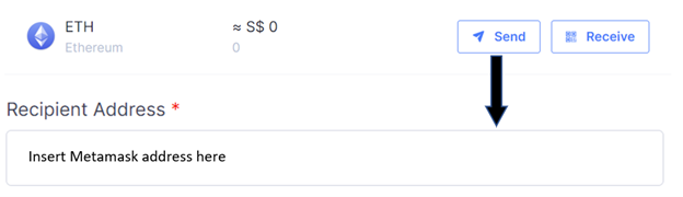 For Coinhako, just click ‘send’ beside the cryptocurrency that you wish to withdraw. Copy and paste your Metamask address under the recipient address.