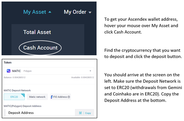 Transfer your coins from your respective exchange wallet to your Ascendex wallet.