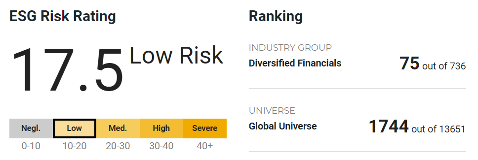 In terms of Sustainalytics rating, SGX has achieved an ESG risk rating of 17.5, which indicates low risk for the company when faced with ESG issues. With this score, SGX ranks 75th out of 736 companies in the Diversified Financials industry, which is within the top 10% in the industry.