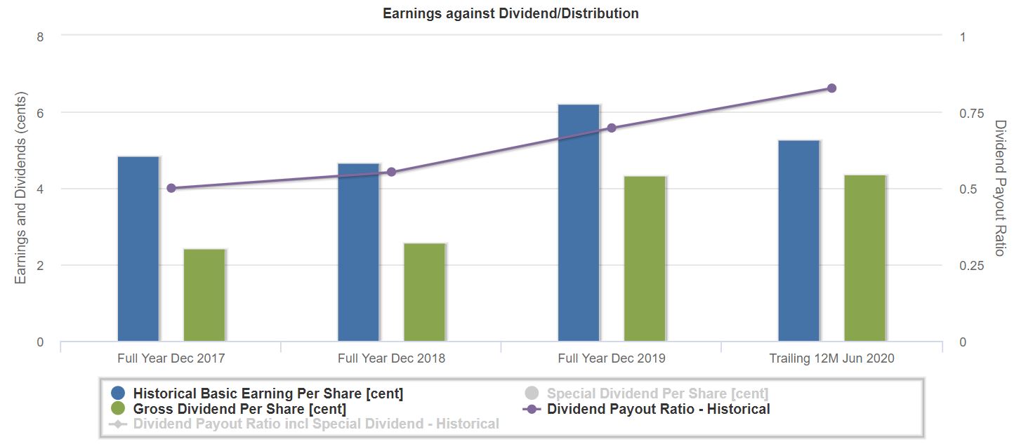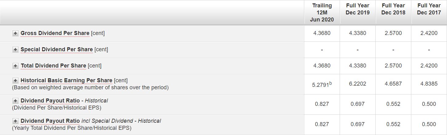 As a result, Delfi’s dividend payout ratio has increased from 50% in FY2017 to 70% in FY2019. However, investors should also take note that if the dividend payout hits above 100%, it indicates that the dividend payout will not be sustainable as it exceeds the company’s earning.