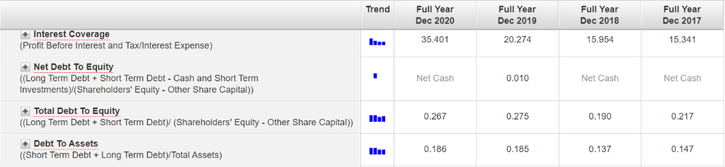 With the lower debt level in FY2020, the Group’s total debt to equity ratio decreased by 2.9% year-on-year to 0.26 times.