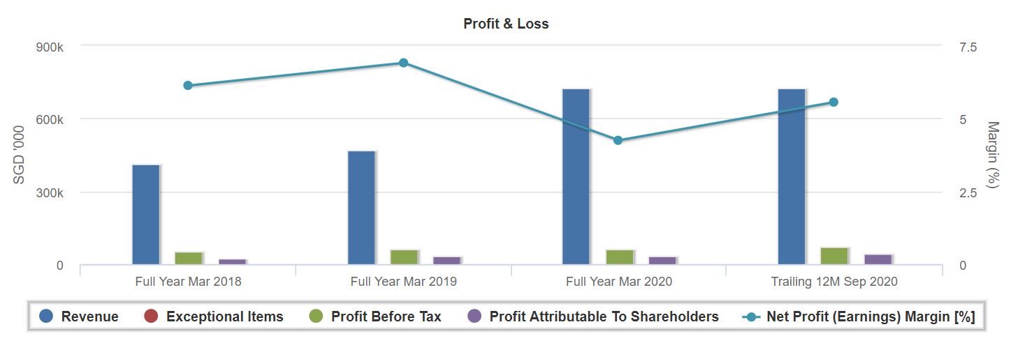 For FY2020, Boustead’s revenue was 54% higher year-on-year at S$726.6 million. The growth was due to the increase in revenue across all business division. As the largest revenue contributor to the Group, the Real Estate Solutions Division saw its revenue increase by revenue by 82% year-on-year to a new division record of $426.2 million. This was due to the execution of the order backlog of design-and-build projects.
