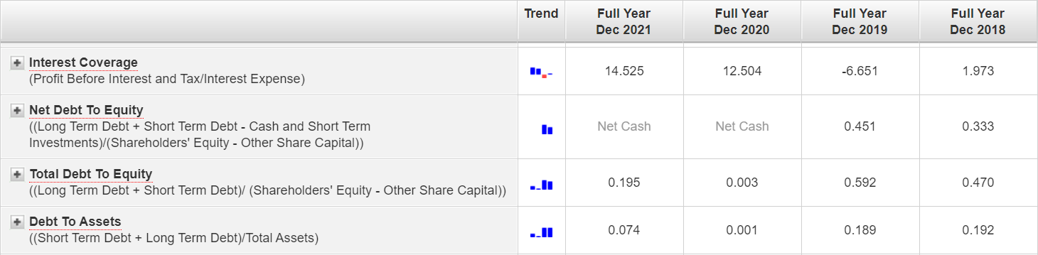 Broadway Industrial saw its interest coverage ratio improving to 14.5 times in FY2021, on back of the higher profit after tax. With such a high interest coverage ratio, this indicates that the Group has sufficient earnings on hand to meet its interest obligations.