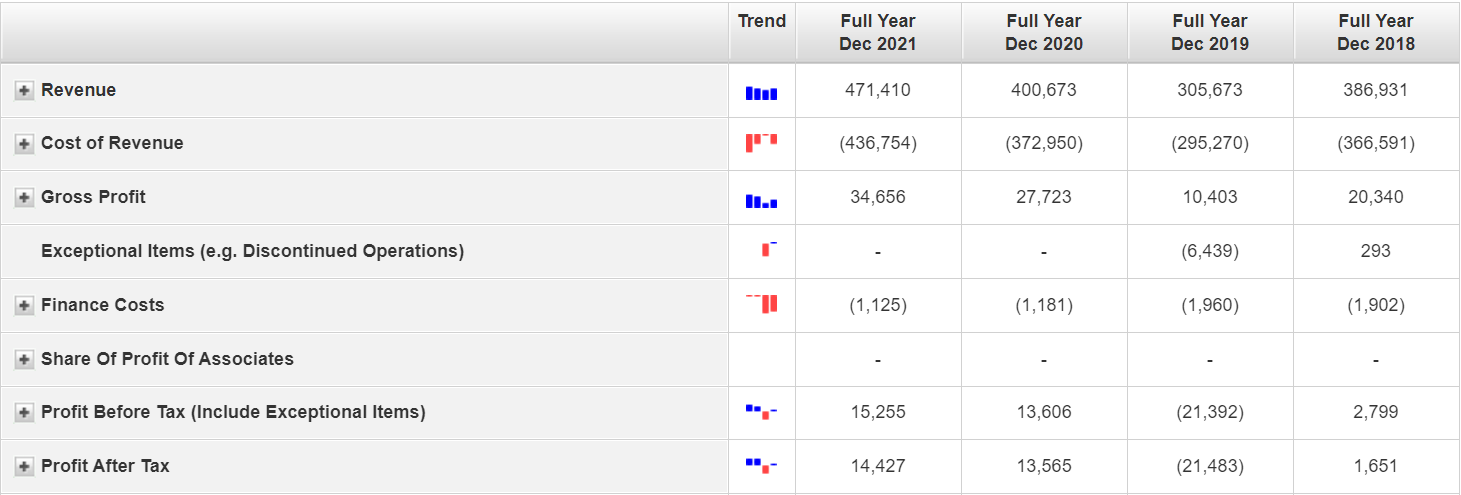 For FY2021, Broadway Industrial’s revenue grew by 17.6% year-on-year to S$471.41 million. The growth was fueled by the increase in shipment volume and higher average selling price of its HDD products arising from a shift in its product mix from personal and mobile computing segments to high performance enterprise segment.