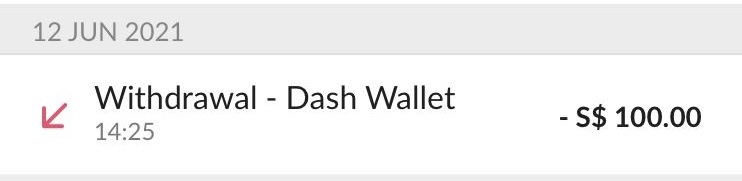 I transferred $100 of my Lifetime Interest from my Singtel Dash EasyEarn account to my Singtel Dash wallet.