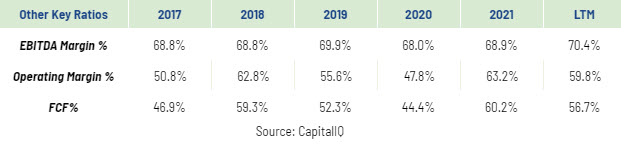 A company’s profitability is measured using two metrics: gross profit margin and operating profit margin. The difference is that gross profit margin only considers direct manufacturing costs. On the other hand, operating profit margin also considers running expenses such as overhead. Free Cash Flow (FCF) represents the cash available for the company to repay creditors and pay out dividends and interest to investors.