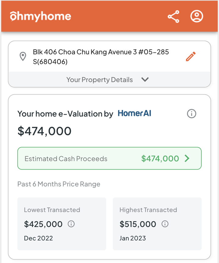 If I were to sell my house today, I could set my selling price to around $500,000 — this is close to my home valuation and is within the range of the highest transacted price in my neighbourhood.