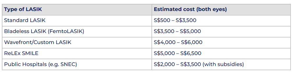 Here’s a general overview of LASIK costs in Singapore (as of 2025):