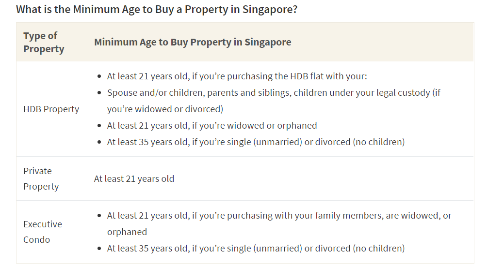 Factors such as age and marital status can affect the type of property that you are eligible to purchase in Singapore.