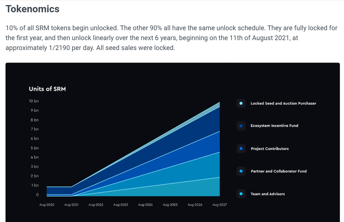 It’s a linear curve representing constant emissions from Aug 2021 onwards. This means that from Aug 2021 to Aug 2027, we can expect the total supply of Serum ($SRM) to 10x. For $SRM to do a 10x in price by Aug 2027, it has to do actually a 100x. (pardon my plebian math skills). WTF?