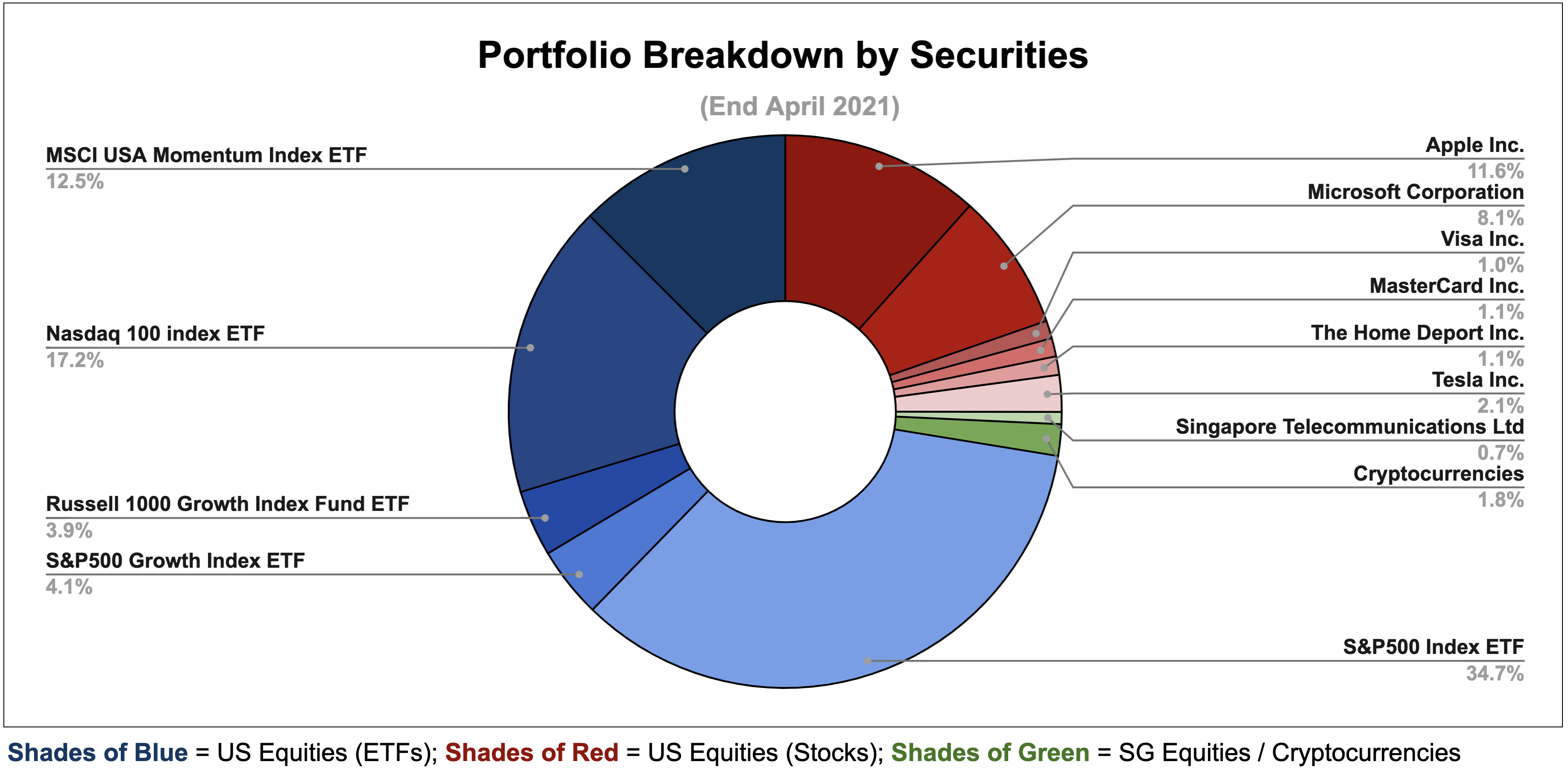 My portfolio listed here consists purely of equities and cryptocurrencies only, and excludes social security (CPF & SRS), debt instrument holdings (i.e. bonds & SSBs etc), emergency funds, as well as personal savings.