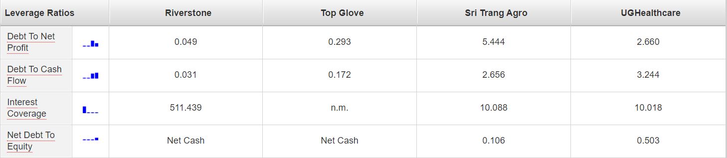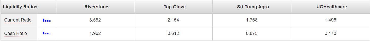 On the other hand, Riverstone has the highest cash ratio of 1.96 times among the other 3 companies. This goes to show that Riverstone has ample cash on hand to expand its capacity and handle its debt obligations. Sri Trang Agro came in 2nd with a cash ratio of 0.87 times as the company generated a huge amount of cash from the recent IPO of its glove segment.
