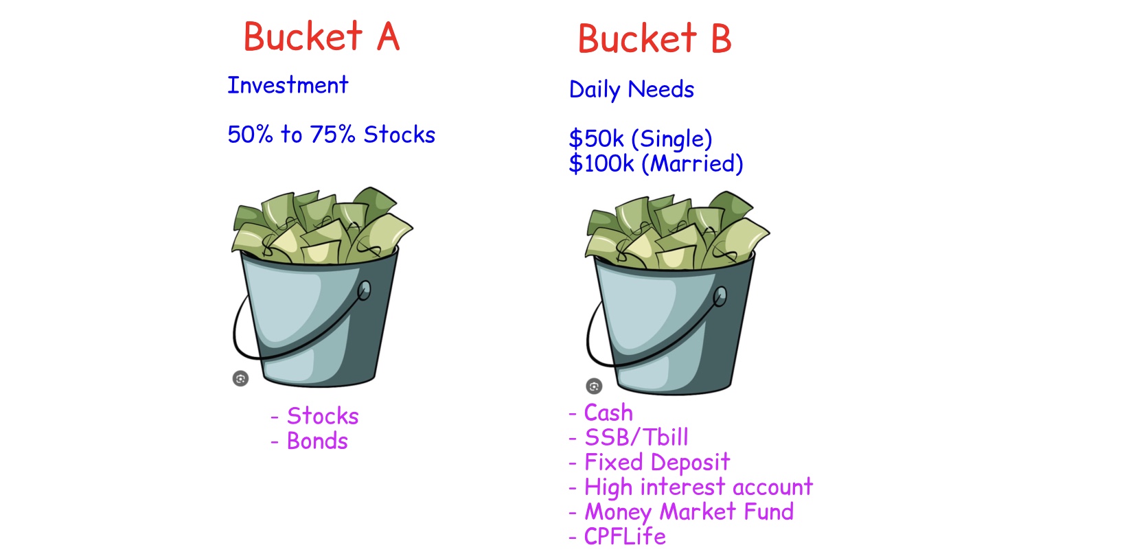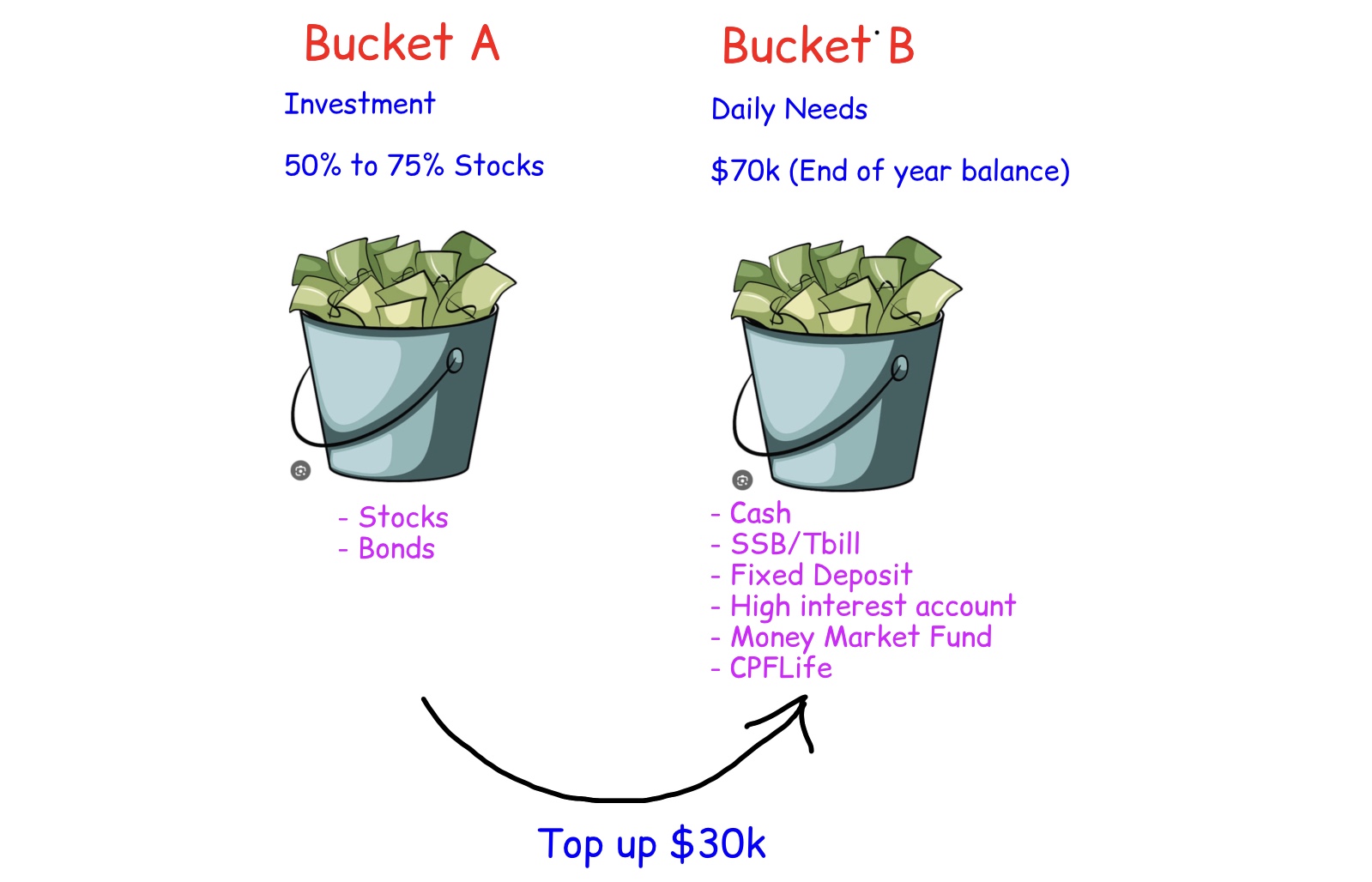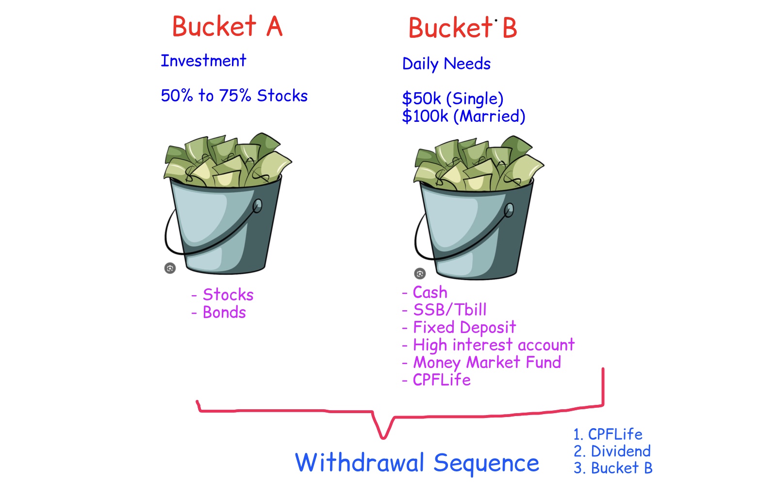 If we have surplus income from CPFLife and dividend then we can reinvest the cashflow into Bucket A, else we can withdraw from Bucket B to make up for any short fall.