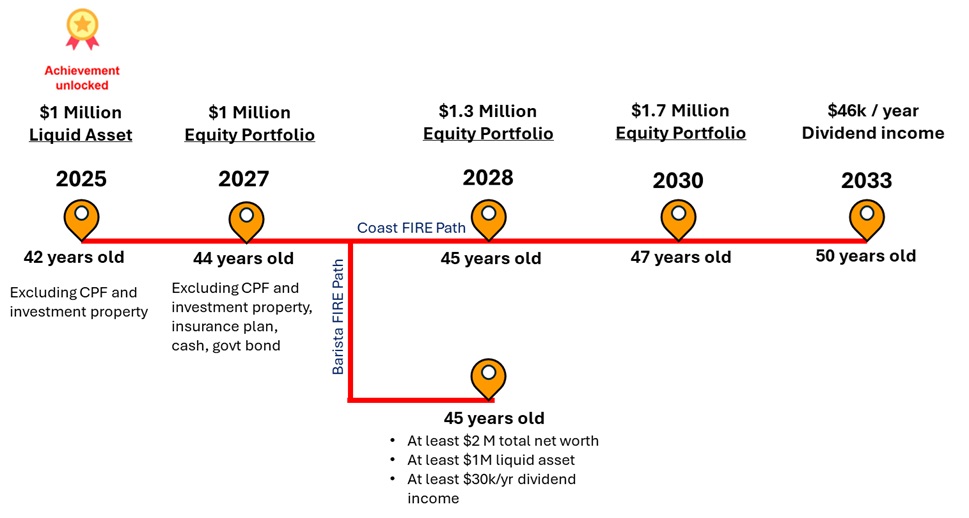 - Since my equity portfolio will be the main source of retirement funding, I have excluded CPF and investment property, which will serve as extra bonuses.