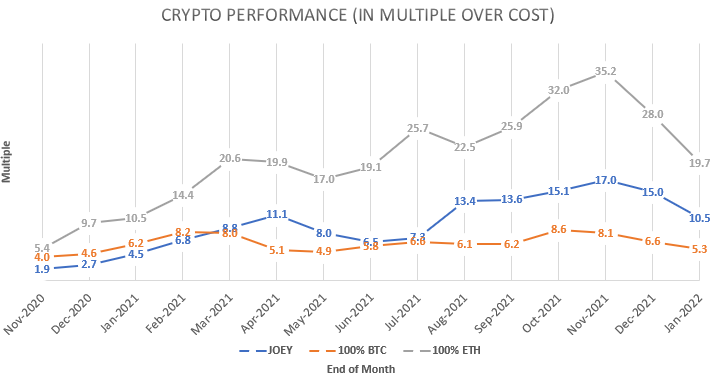 *Charts start from end of November 2020 when I started recording my crypto portfolio. Summarizing: