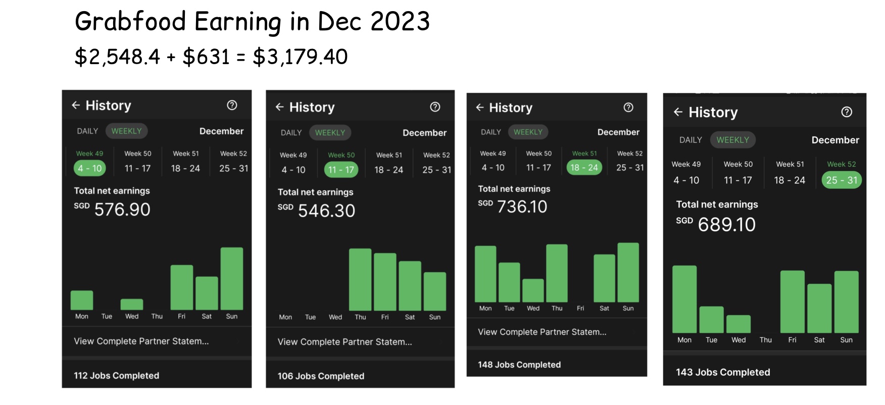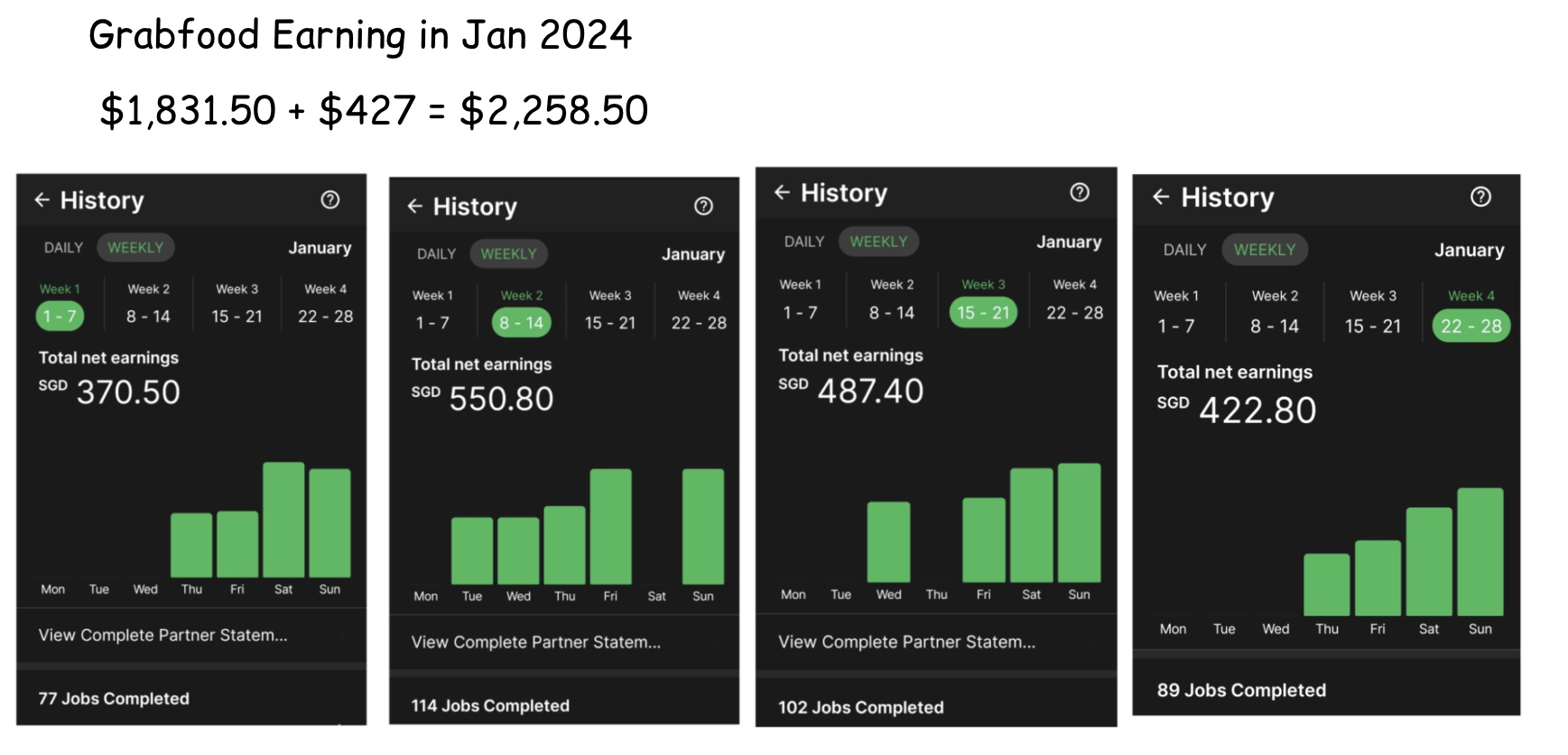 - As a part time cyclist, my earning can range between $1,500 to $2,000 per month due to lesser hours committed, as shown in my Jan earning.