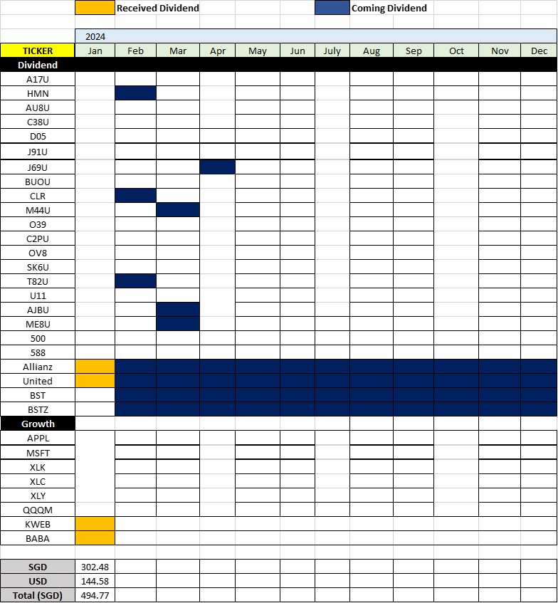 Dividend recieved in Jan = $494.77